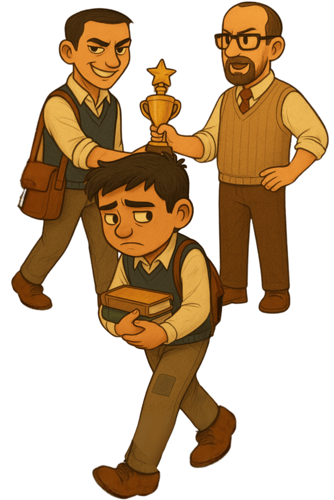 Mateo, a hardworking scholarship student at an elite private school, is constantly bullied by a wealthy classmate named Rodrigo. After Mateo's essay mysteriously disappears, Rodrigo wins a prestigious scholarship contest with an essay Mateo recognizes as his own. Speak with Mateo and advise him on how to vindicate himself.